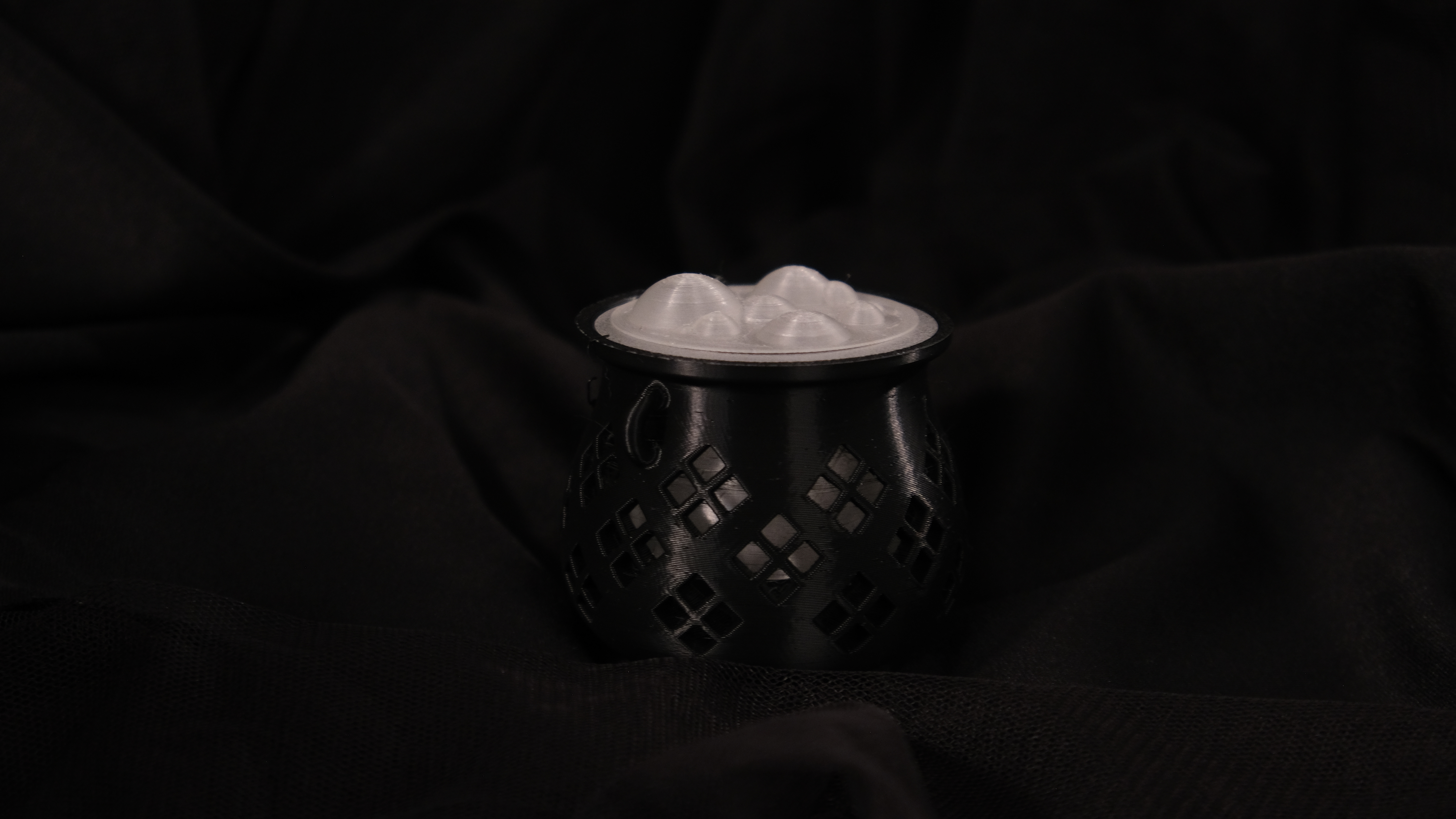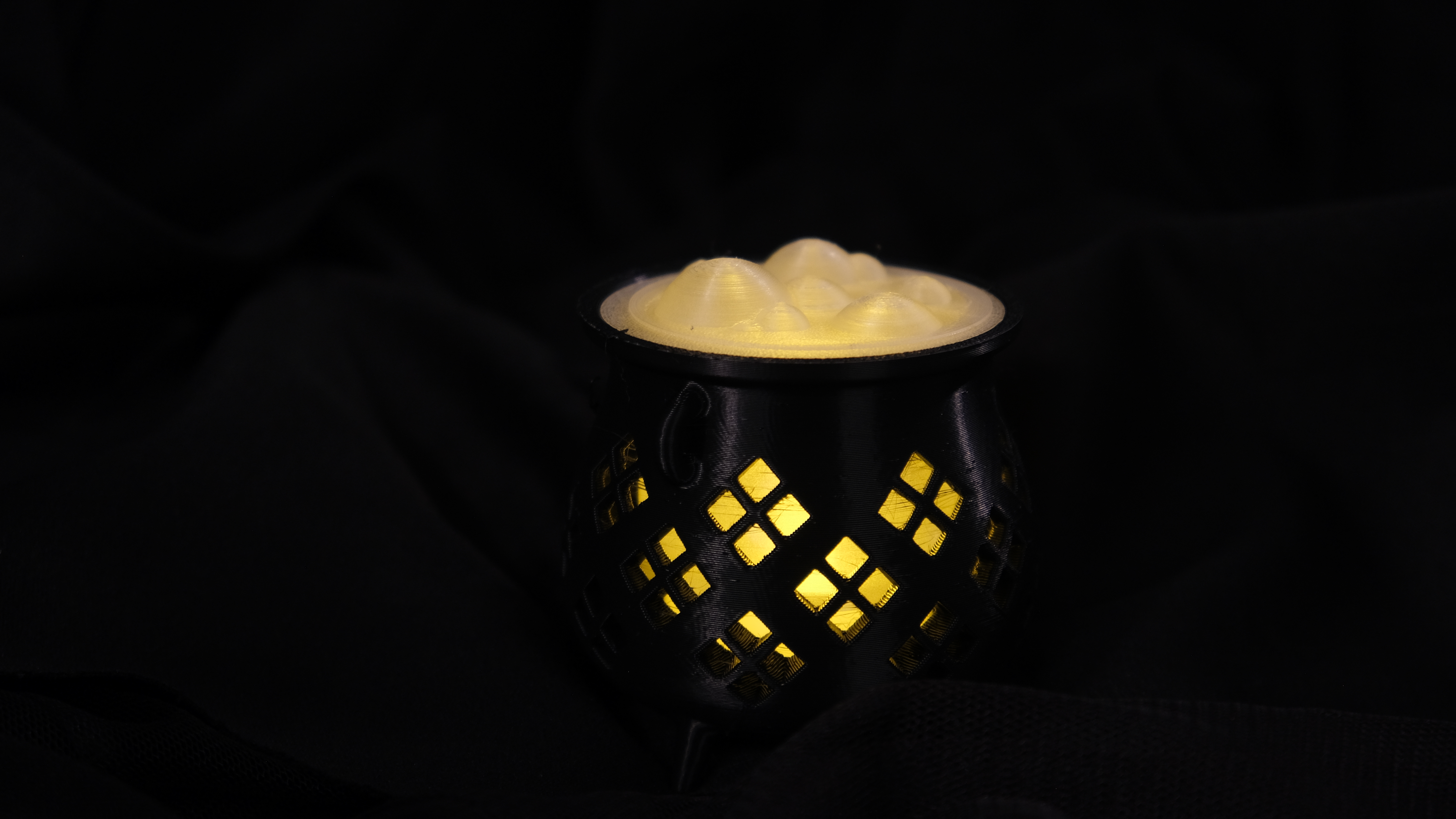 Gece parlayan cadı kazanı! ? İçine tealight koyduğunuzda ışıldayan, üst kısmı karanlıkta parlayan 3D baskı cadı kazanı ile Halloween gecesi büyülü görünecek.