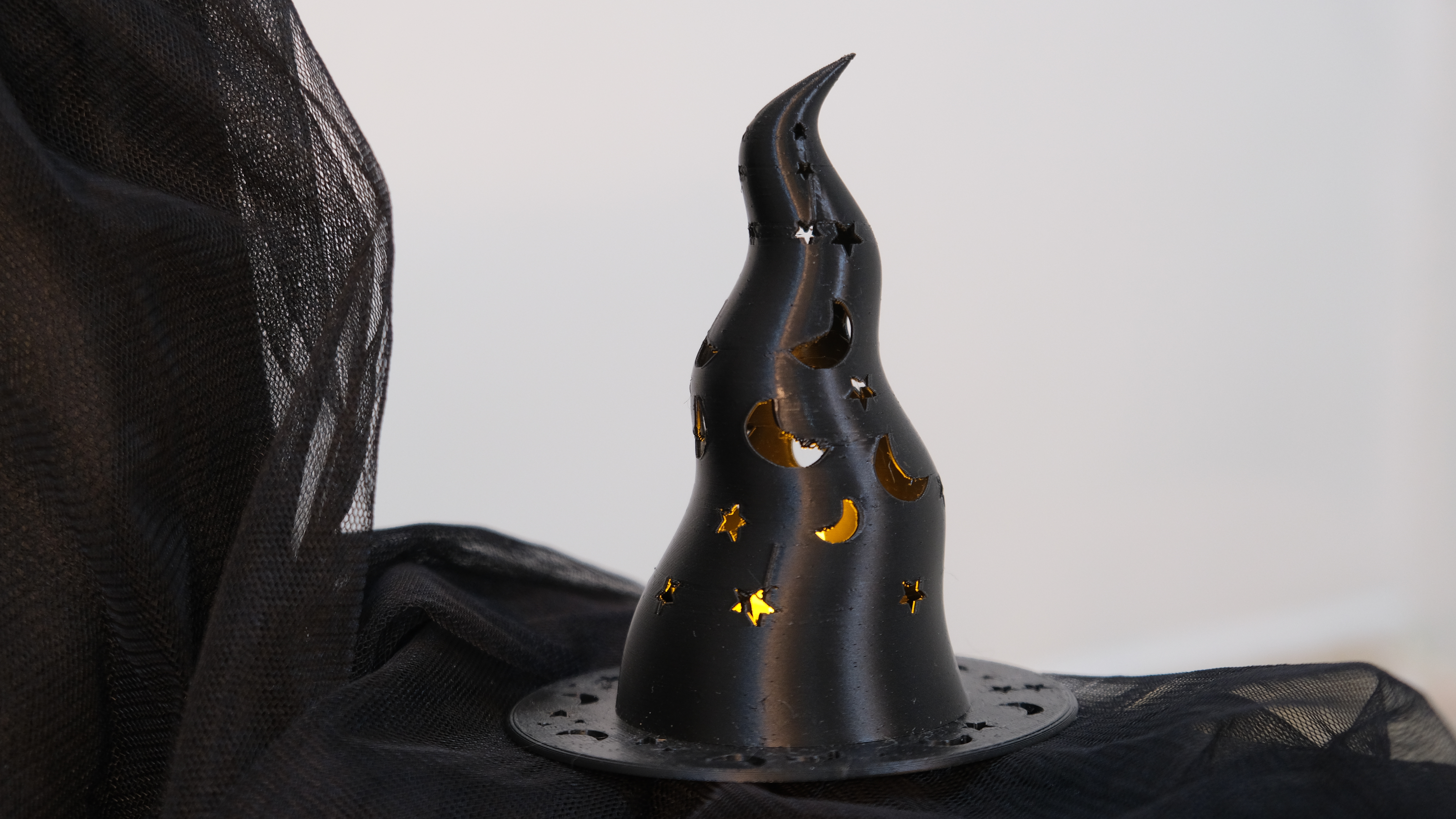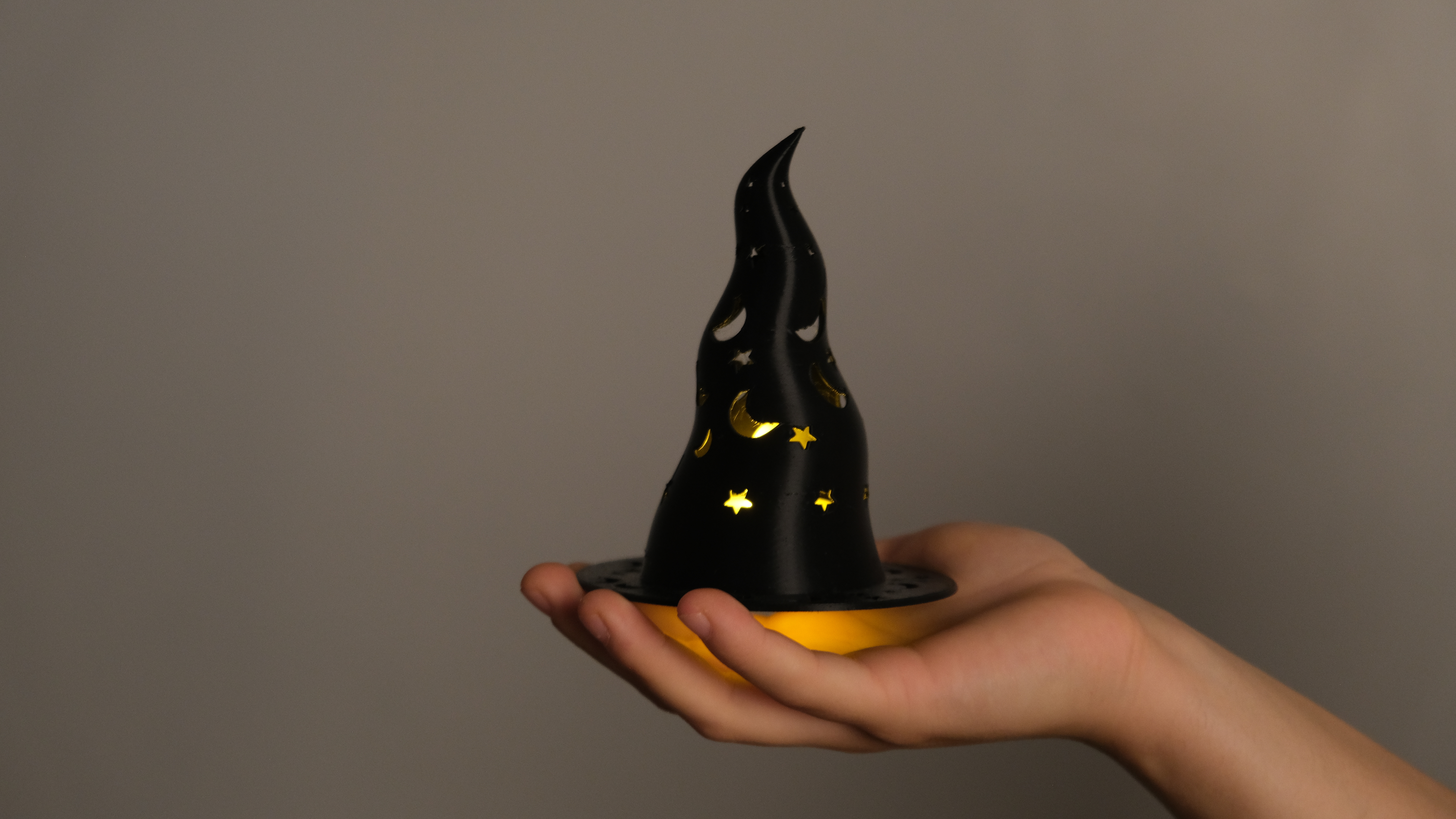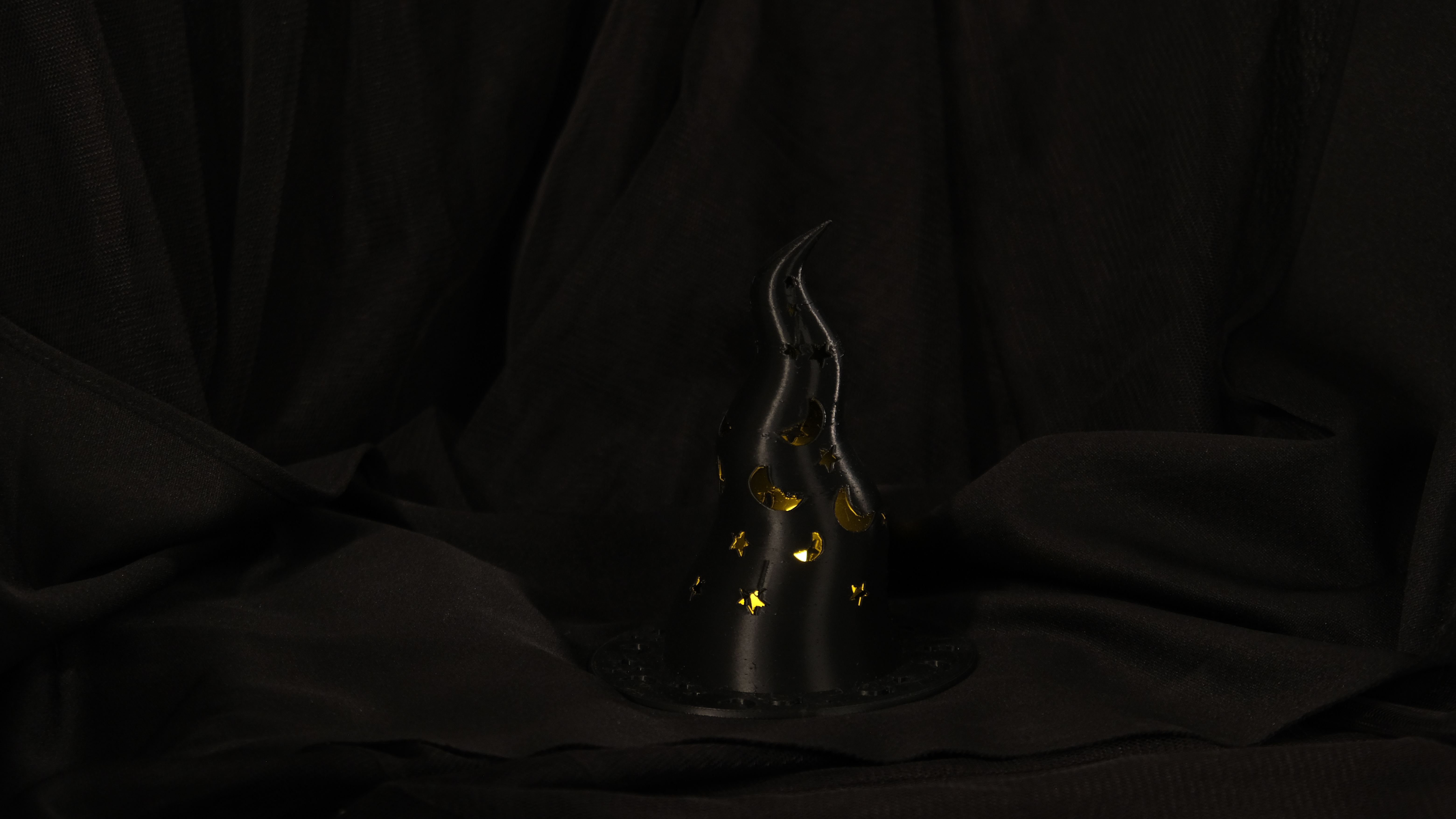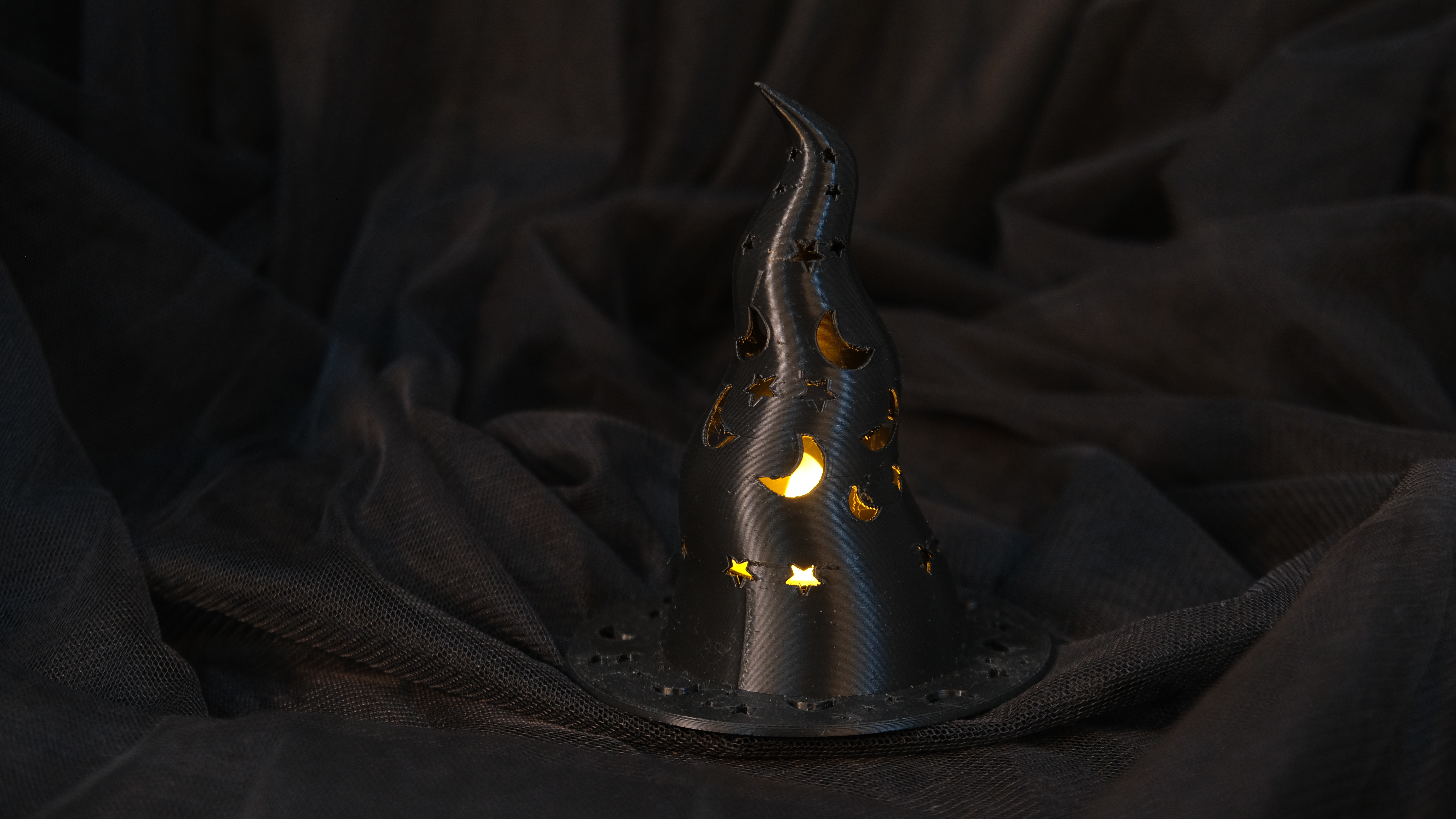 Üzerindeki ay ve yıldız boşluklardan ışık sızdıran cadı şapkası, Halloween gecenizi büyülü bir atmosfere dönüştürüyor. ?✨